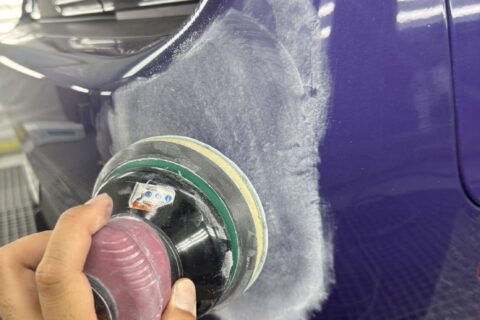 塗装は専用ブースで行い、色味・艶・塗膜の厚みを徹底管理。パープルの光沢感を再現しつつ、オーナー様の車体に自然に馴染む仕上がりを目指しました。