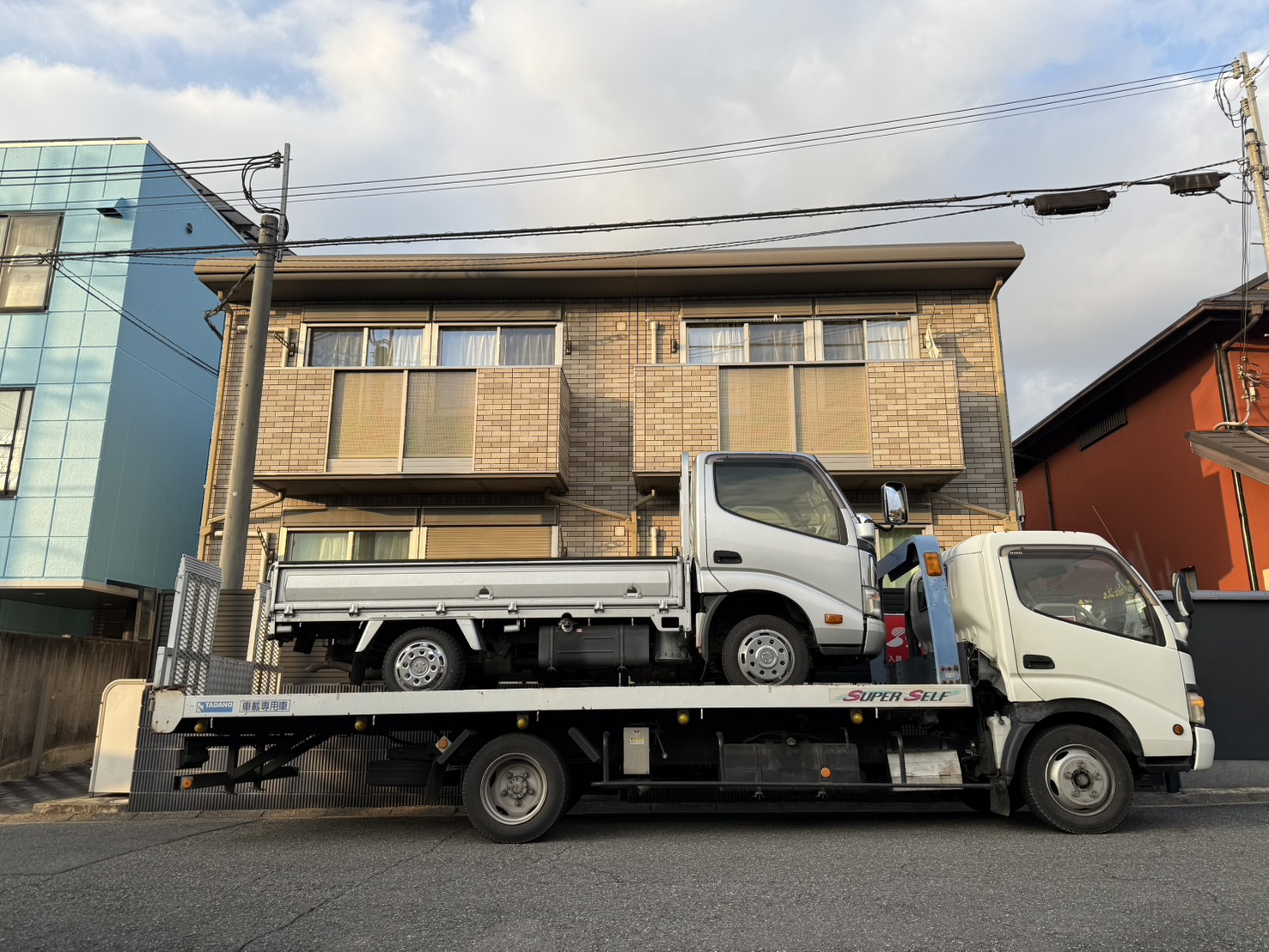 奈良県内でトヨタ・ダイナを運転中のお客様から、焦った様子でお電話をいただきました。数トンの荷物を積んで走るトラックにとって、ブレーキの不調は本当に命取り。何より「明日からの仕事はどうしよう」という不安が一番大きかったはずです。すぐに積載車で現場へ向かい、お客様の不安ごと車を救出してきました。