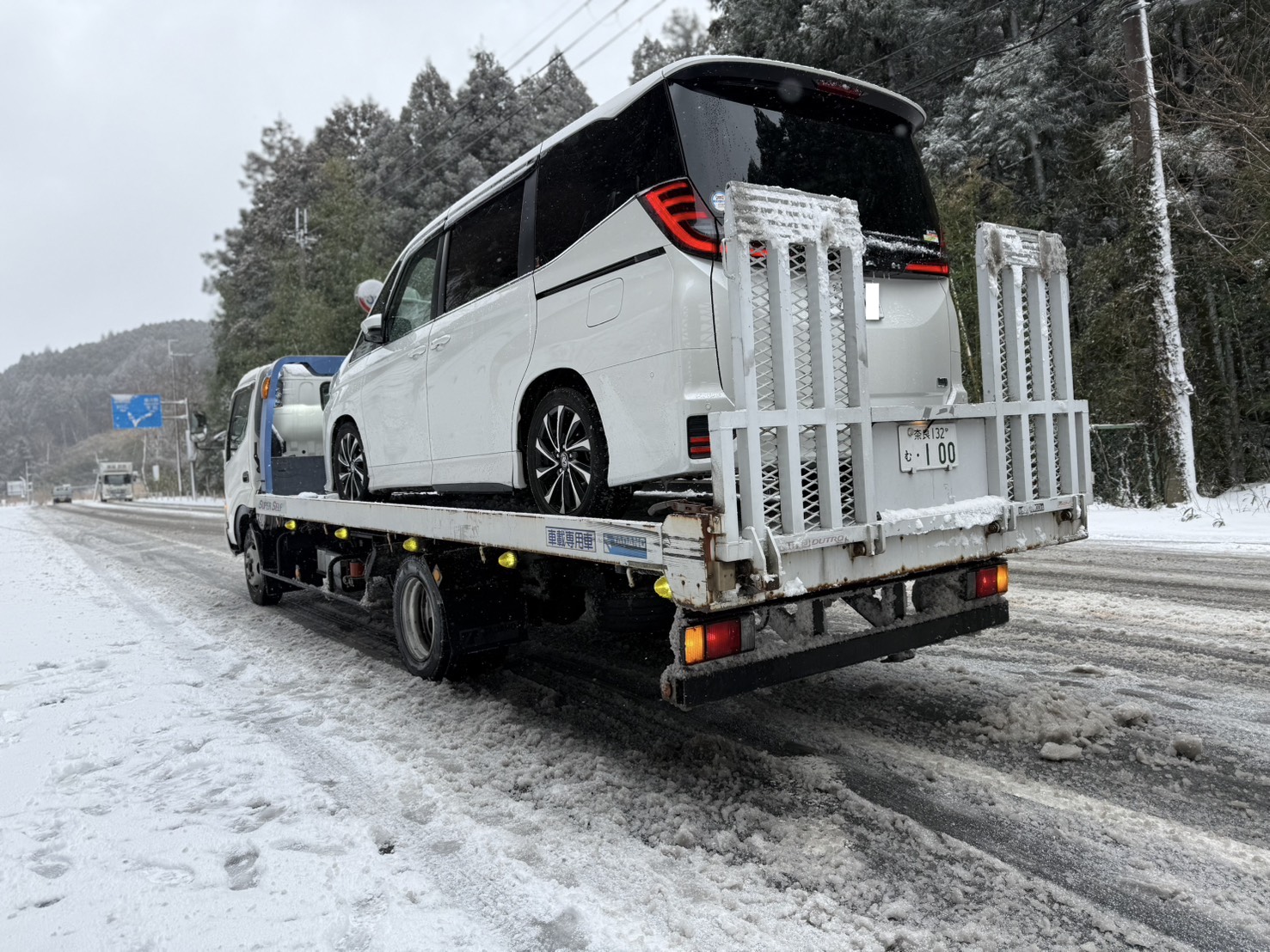 【ノア雪道脱輪レッカー】引き上げから下回り点検、板金修理まで一括対応!奈良県桜井市:GLOW ART