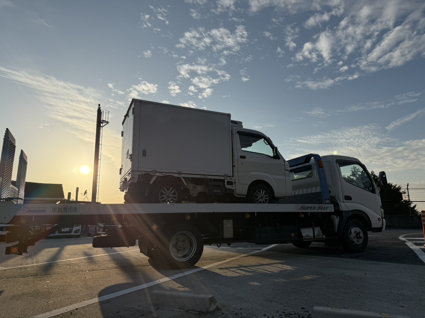 パーキングエリアにて自走不能となったハイゼットを迅速に回収