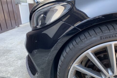 【ベンツ Cクラス カブリオレ 修理】フロントバンパー&サイドスカートを板金塗装|桜井市 GLOW ART
