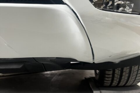お客様から「他店で修理した箇所が雑で仕上がりに不満」とご相談いただきました。損傷の状態を確認し、板金修理でどこまで目立たなくできるかを丁寧に説明。高級輸入車なので仕上がりの精度を重視し、作業方針を決定しました。