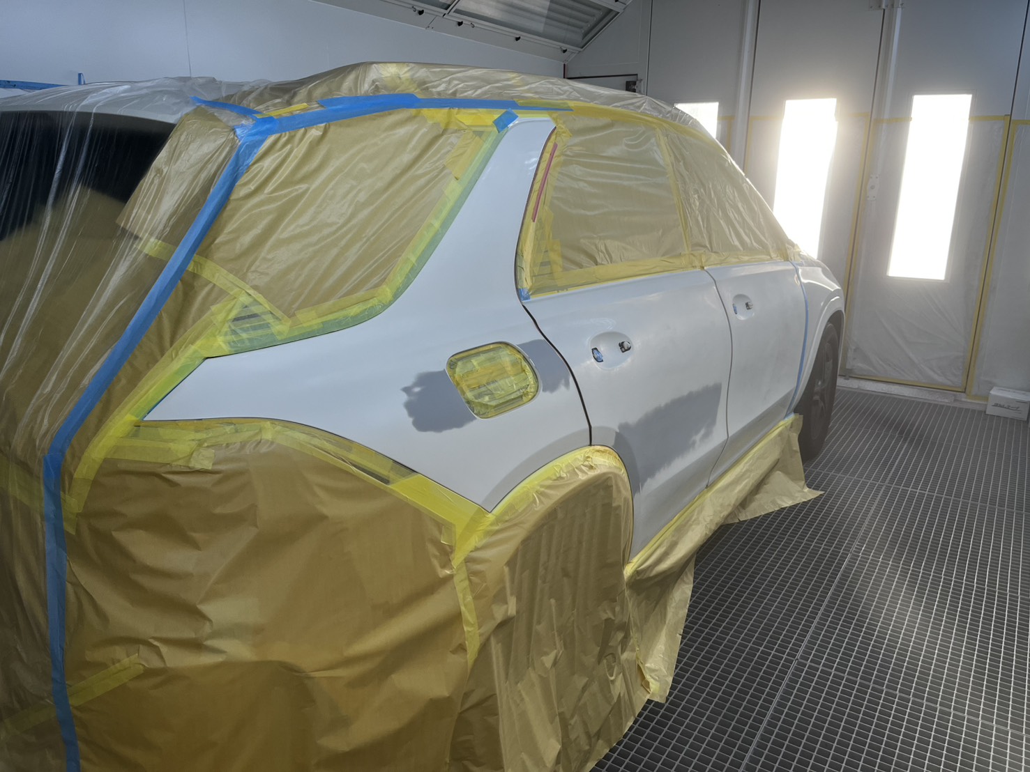 GLE特有の張り出しラインを正確に再形成。高精度なパネル修正と、純正塗料データを使用した調色で、光の反射まで自然な仕上がりを再現しました。