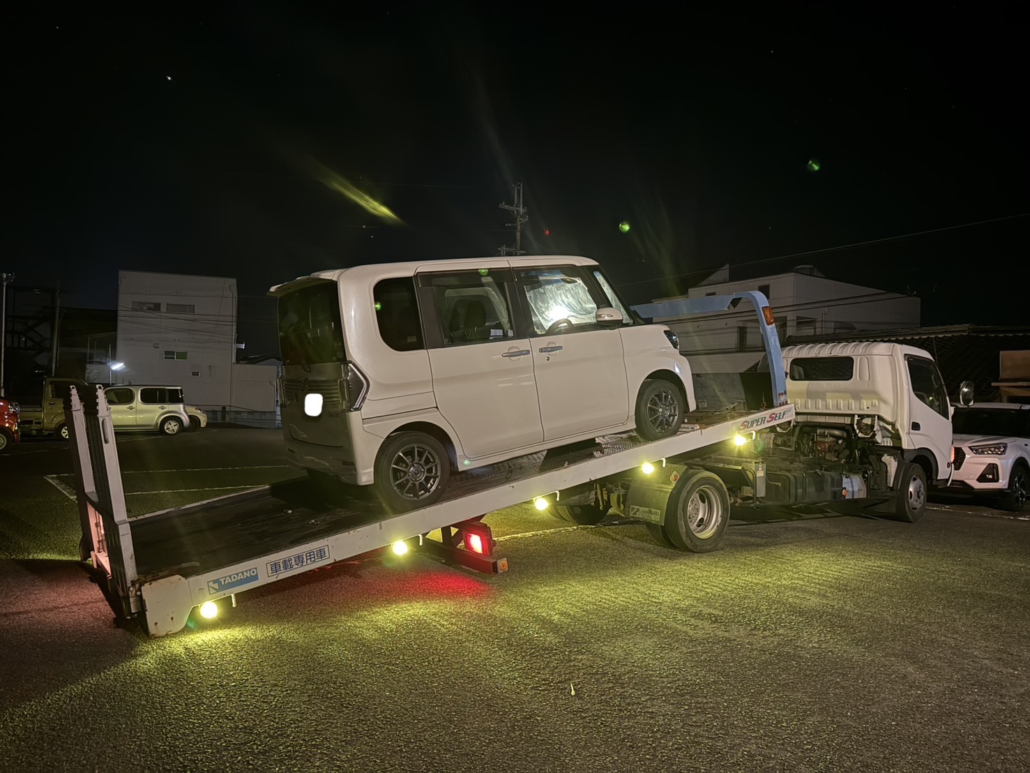 タントの事故修理・レッカー搬送|当て逃げで走行不能なお車を引き取り、その場で代車(レンタカー)を提供!【奈良 GLOW ART】