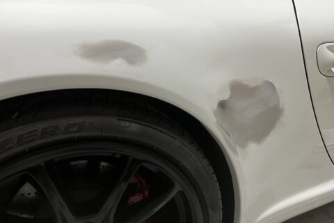 911カレラS 右リアフェンダーの凹みを修理|奈良県でポルシェの板金塗装ならGLOW ARTへ!