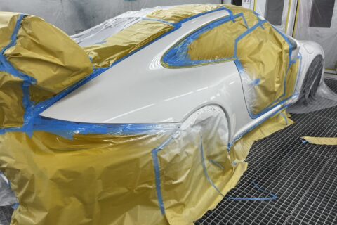 奈良県桜井市にお住まいのポルシェ911カレラSオーナー様より、右リアフェンダーの凹みと小キズの板金塗装・修理をご依頼いただきました。輸入車ならではの精密なボディラインと光沢を損なわず、元通りの美しい仕上がりを目指して作業しています。キズ修理・へこみ修理・保険修理・事故修理にも対応可能です。