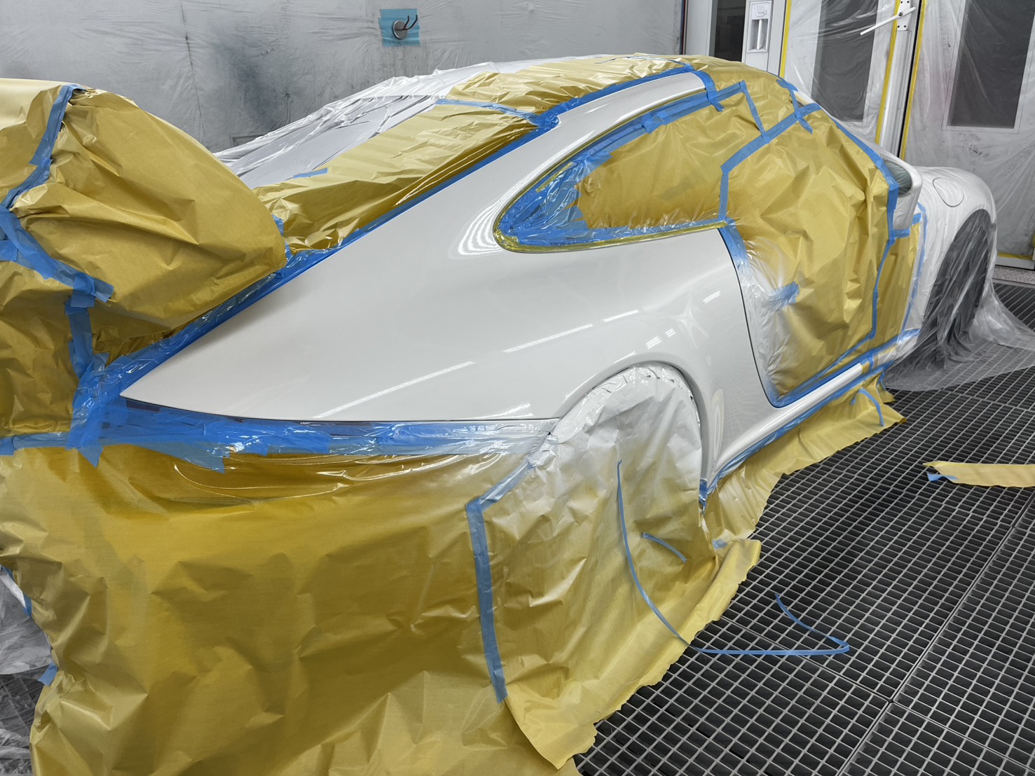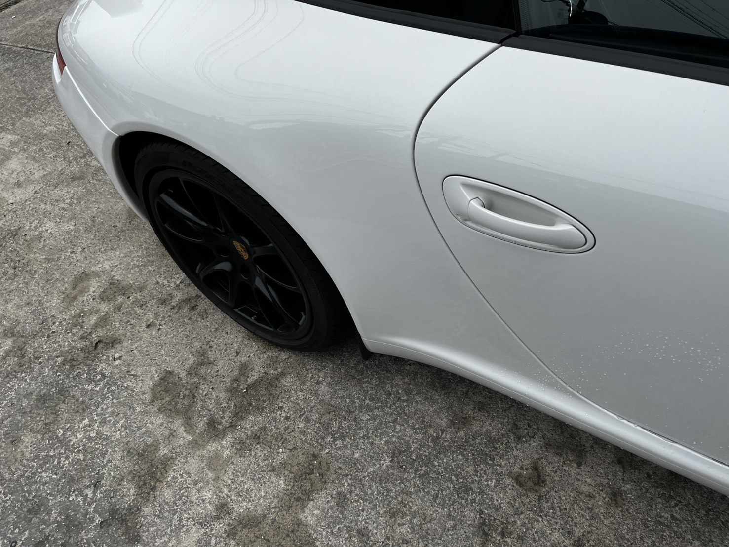 奈良県桜井市にお住まいのポルシェ911カレラSオーナー様より、右リアフェンダーの凹みと小キズの板金塗装・修理をご依頼いただきました。輸入車ならではの精密なボディラインと光沢を損なわず、元通りの美しい仕上がりを目指して作業しています。キズ修理・へこみ修理・保険修理・事故修理にも対応可能です。