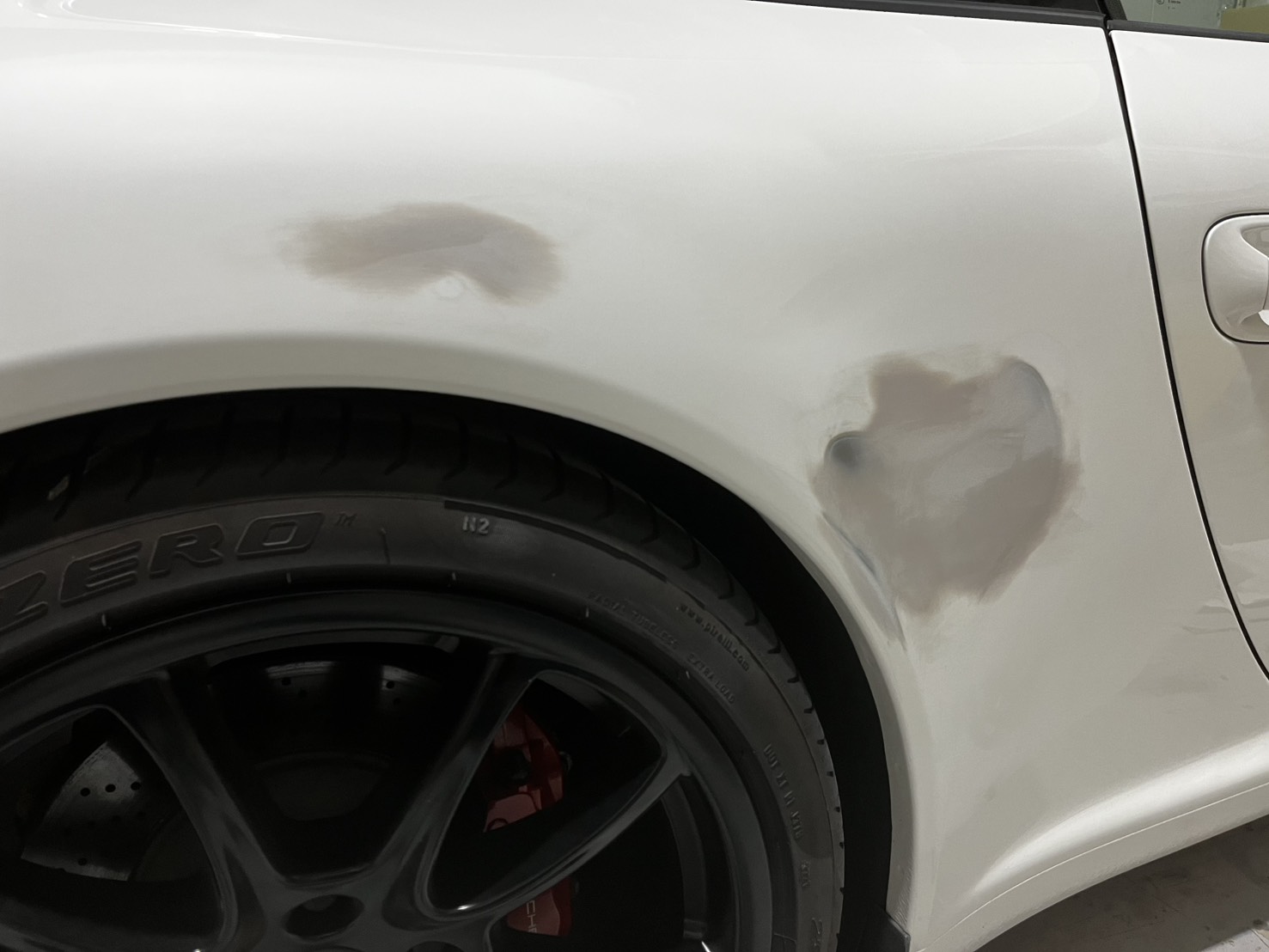 911カレラS 右リアフェンダーの凹みを修理|奈良県でポルシェの板金塗装ならGLOW ARTへ!
